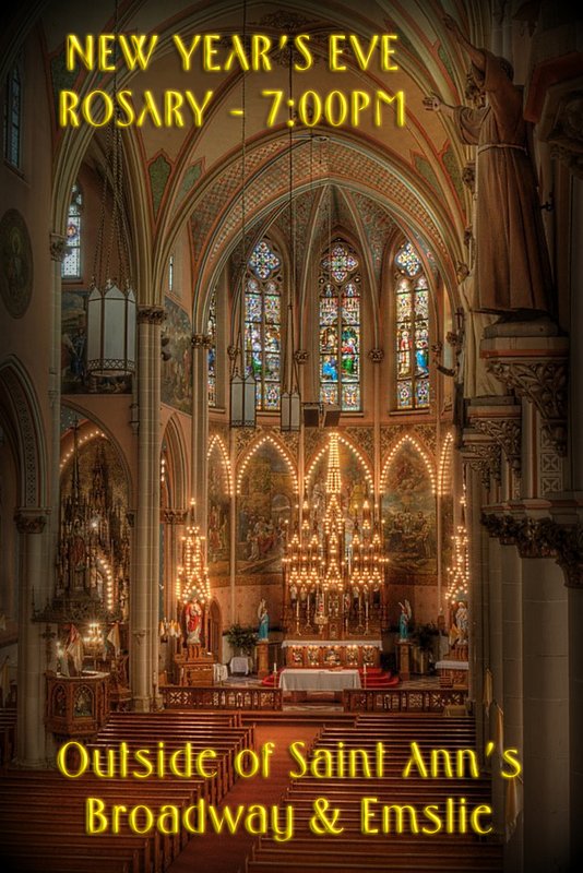 The Friends of Saint Ann’s invites the public to come pray the rosary with them outside of Saint Ann’s Church and Shrine of New Year’s Eve.